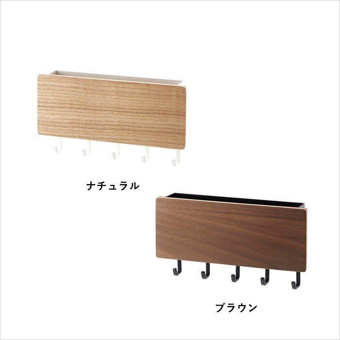 ホルダー付きマグネットキーフック リン RIN 2729/2730 ブラウン ナチュラル キーフック ウォールフック 玄関ドア 鍵収納 小物置き 木目 山崎実業 YAMAZAKI
