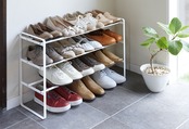 伸縮自在の3段シューズラック!