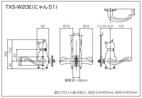 わんにゃん レバーハンドル にゃん51 TXS-W20E チューブラ錠(TXS-51錠)納期2~3週間